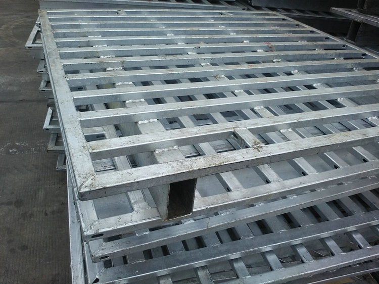 熱鍍鋅鋼托盤(鋼制托盤)是傳統木托盤、塑料托盤的理想換代產品,適合叉車作業,存取貨物方便. 主要用于多用途的地面存儲、貨架存儲及貨物聯運、周轉等超輕金屬托盤系列。集裝、堆放、搬運和運輸的放置作為單元負荷的水平平臺裝置。是現在工業重要的倉儲與運輸輔助設備之一。 主要材料為鋼材或鍍鋅鋼板,經專用設備成型,各種型材互相支撐,鉚釘連接加強,再經CO2氣體保護焊焊接而成。
